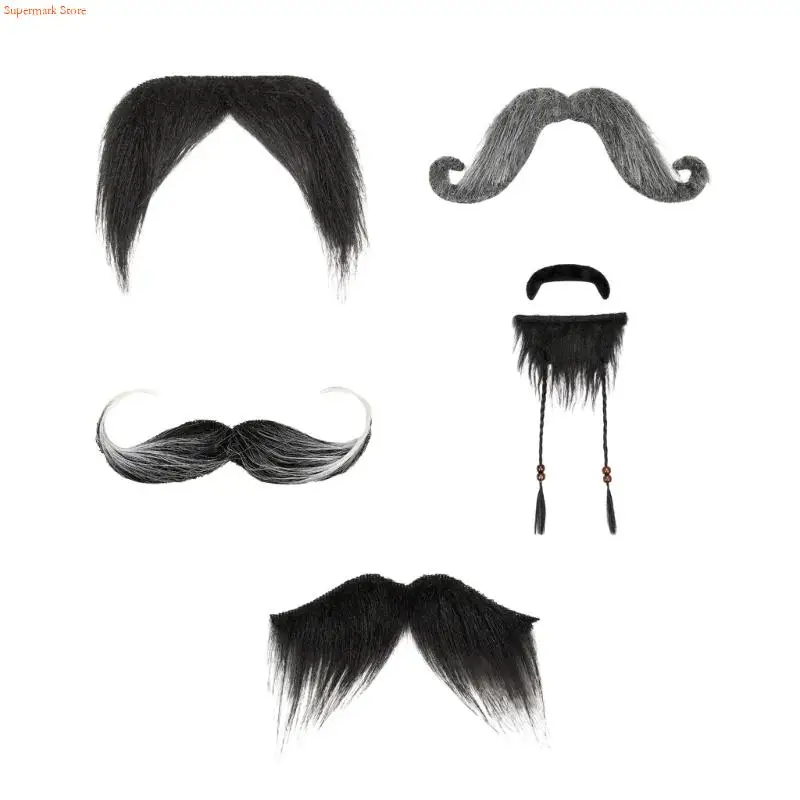 Q5WE 3 pezzi pratica barba finta con texture naturale Oggetti scena per feste Halloween per uomo