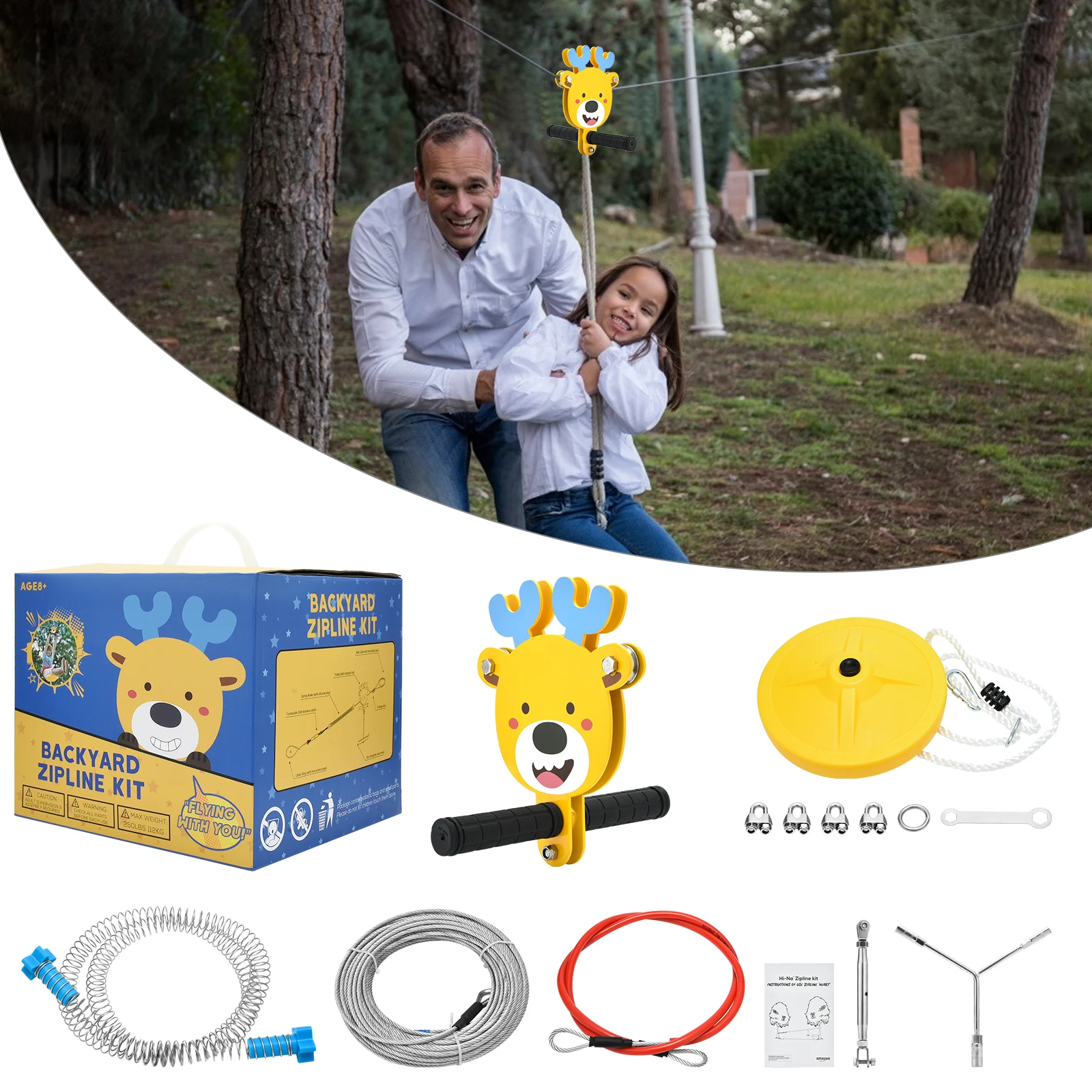 Kit linea zip per cavo composto resistente da 80 piedi e 6 mm di diametro per bambini con freno a molla in acciaio inossidabile e zipline per sedile per cortile