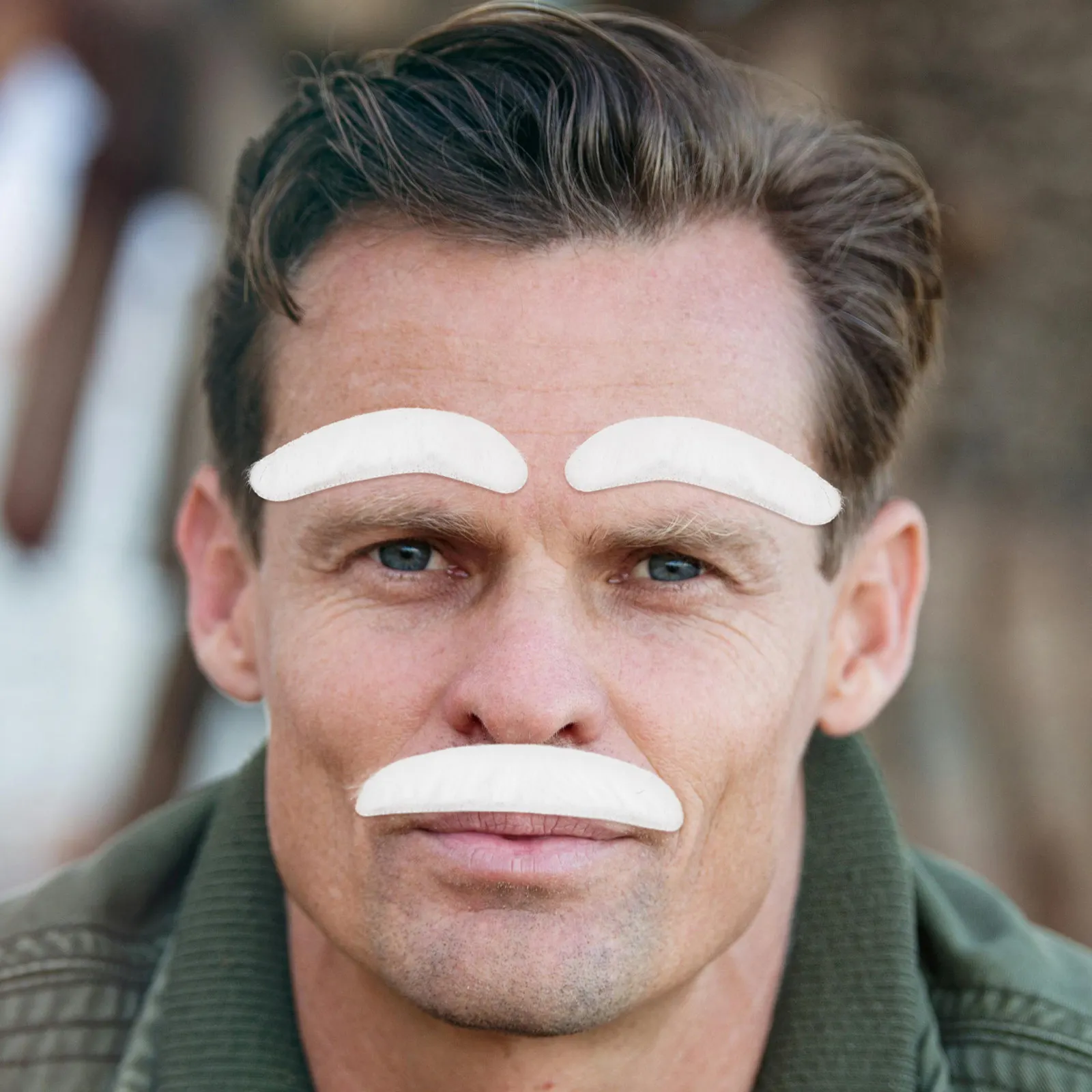 Sopracciglia di Babbo Natale Bianche, Barba Finta Autoadesiva, Accessori per Costume da Vecchio Uomo, Peli Finti per Cosplay Natalizio