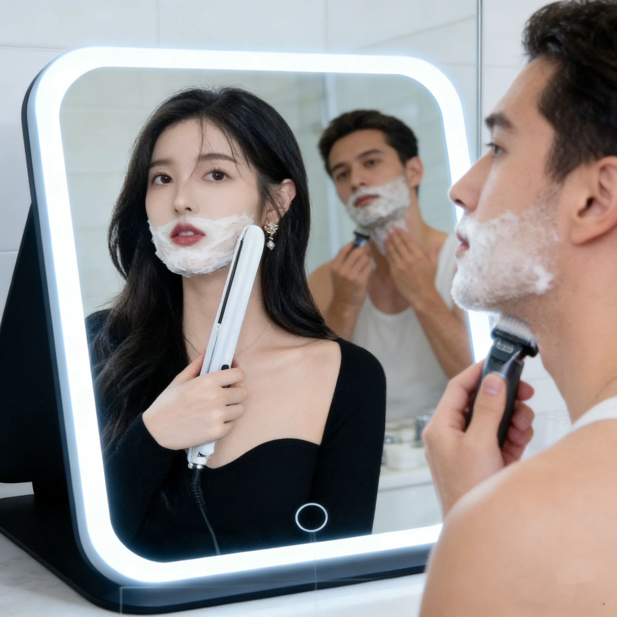 Luce di riempimento per specchio per il trucco a LED, alimentata tramite USB, striscia luminosa ambientale con funzione di memoria regolabile a tre colori.
