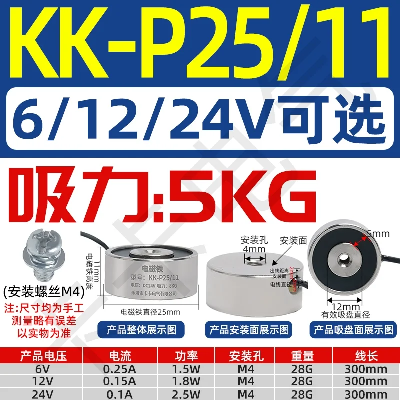 KK-P25/11 Mini elettromagnete rotondo industriale da 5 kg 12 V CC Forte mandrino elettromagnetico magnetico (6 opzioni V/24 V)