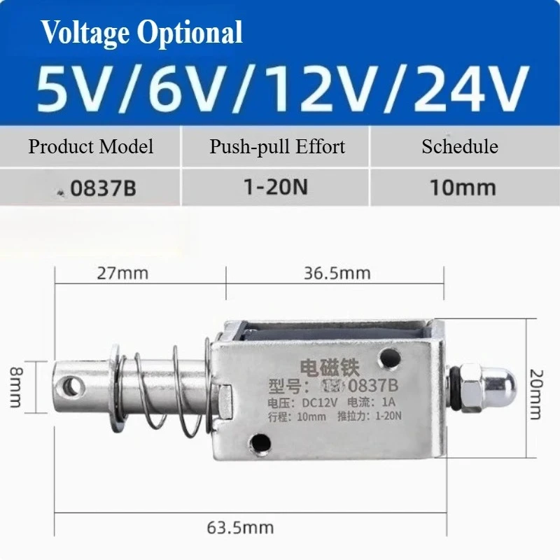 0837B 20N 10MM DC 5V6V12V24V Push-Pull Solenoide Lineare Interruttore A Telaio Aperto Elettromagnete Magnete Elettrico Industriale Corsa Lunga