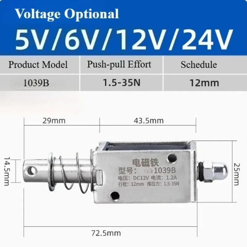 1039B 35N Push-pull DC Elettromagnete Attraverso Interruttore Open Frame DC5V6V12V24V Corsa 12mm Potenza di Aspirazione Magnete Elettrico Industriale