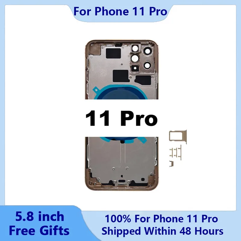 Alloggiamento posteriore per iPhone 11 Pro Guscio posteriore con regali gratuiti, cover posteriore + telaio centrale + vassoio SIM + parti chiave laterale + strumenti + adesivo