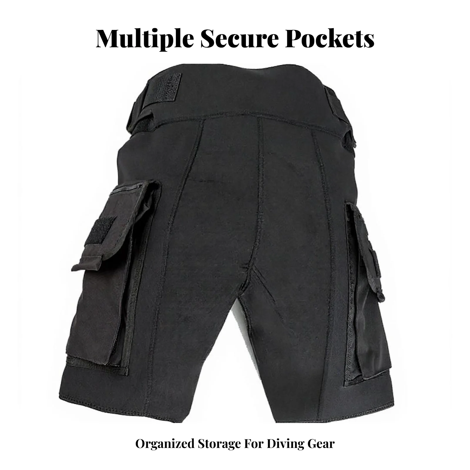 Pantaloncini da immersione, Neoprene, Vita regolabile, Tasche grandi, Tecnici, Unisex, Antiscivolo, Drenaggio rapido