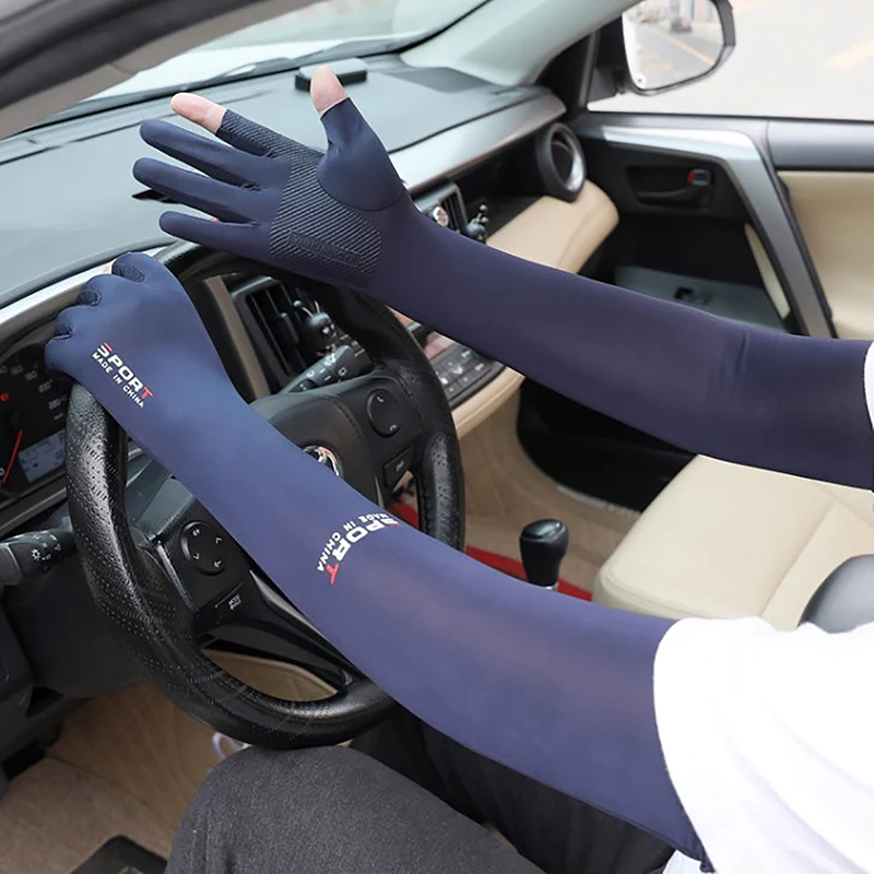 Manicotto da pesca Protezione per il braccio Maniche lunghe in seta di ghiaccio Elastico Protezione solare allentata Copri braccio Sottile isolamento UV Guanti da ciclismo Guida