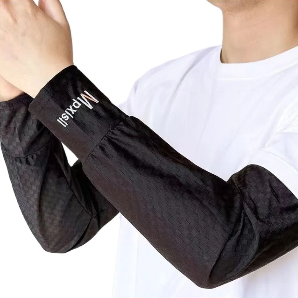 2 pezzi di maniche in seta di ghiaccio per protezione solare, assorbenti e a rapida asciugatura, guardie per braccia sportive da uomo, coprimaniche elastiche traspiranti e rinfrescanti.