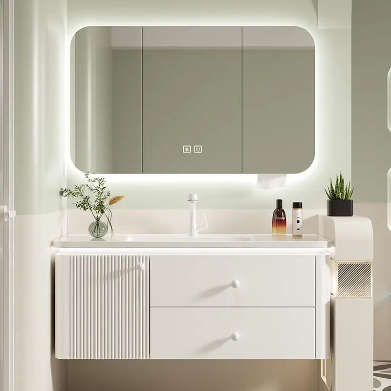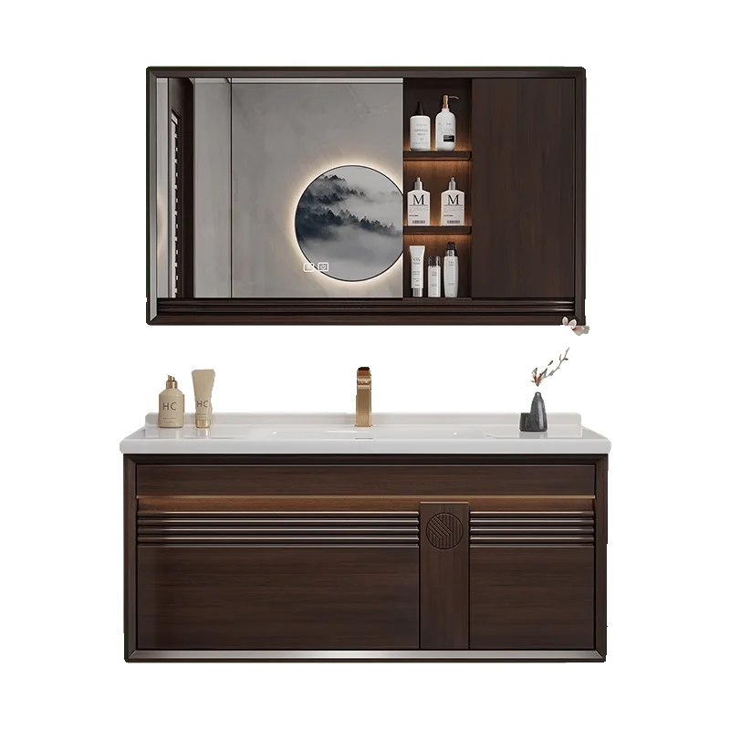 Nuovo mobiletto da bagno cinese moderno, lavabo in ceramica integrato, bagno intelligente in legno massello, combinazione di lavabo
