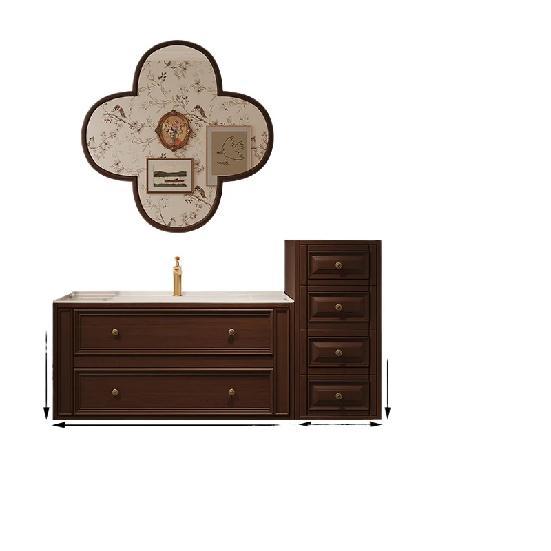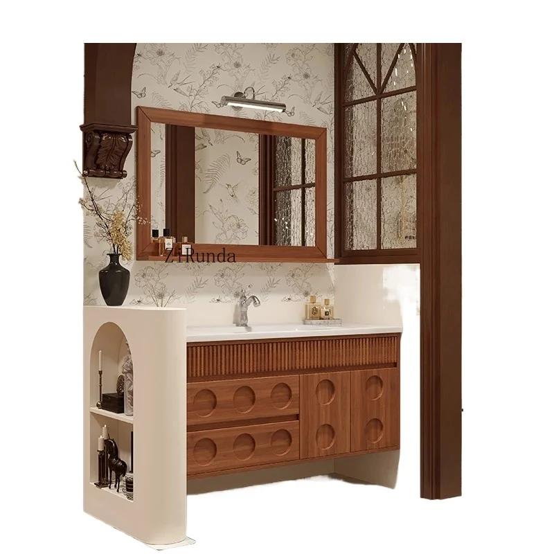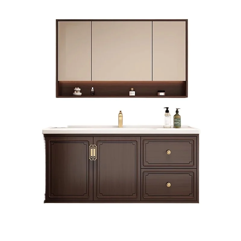 Nuovo mobile da bagno cinese in rovere, lavabo integrato in ceramica, specchio intelligente, mobile da bagno a parete in stile medievale