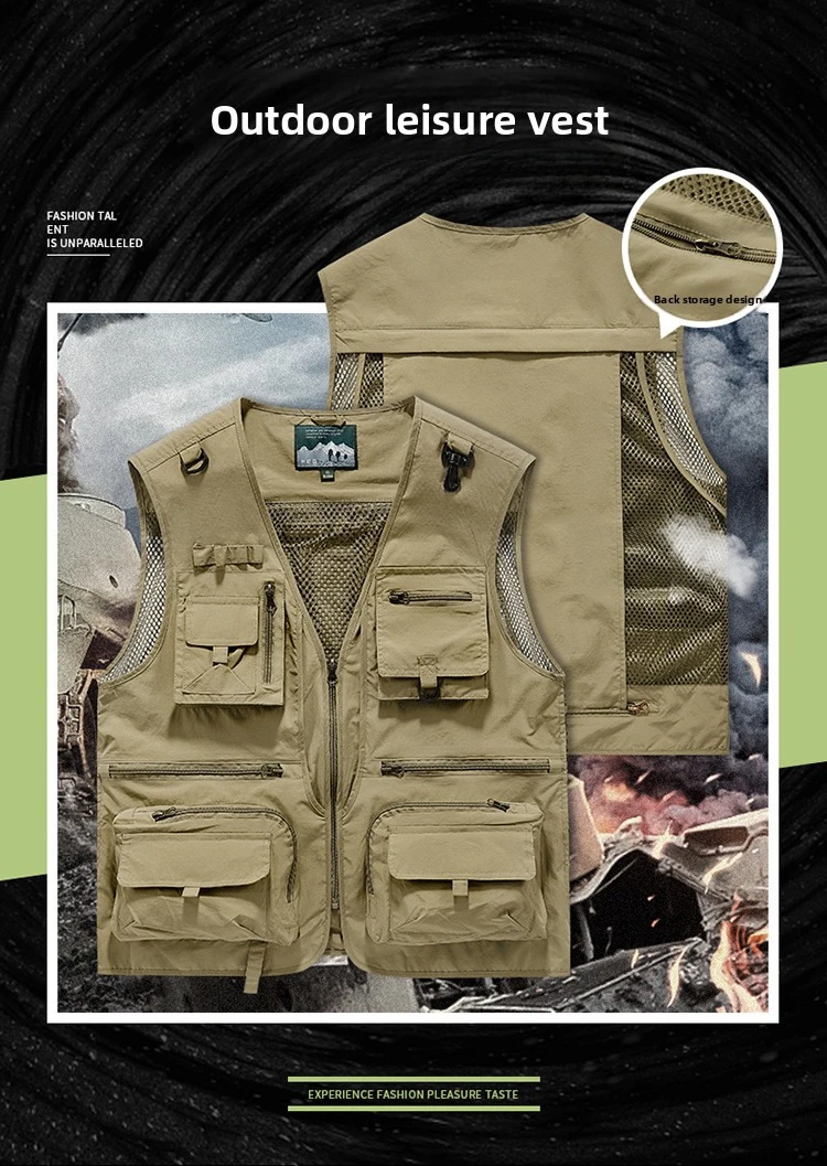 Gilet da pesca outdoor da uomo, gilet tattico multifunzionale con tasche per la pesca a spinning, gilet fotografico