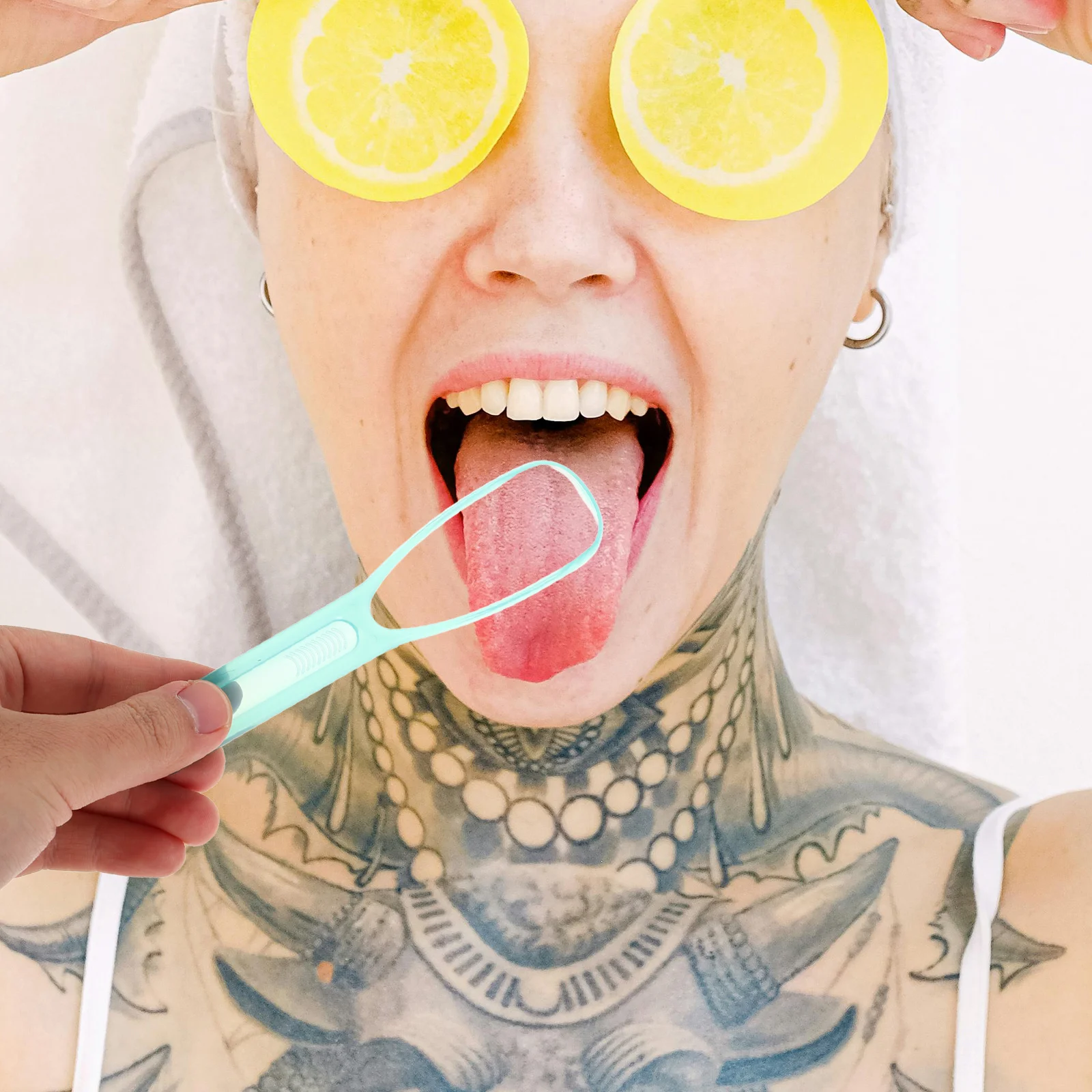 Raschietti per la lingua a doppio uso, riutilizzabili, per la pulizia orale, spazzolino igienizzante, per l'alito fresco e la cura della bocca