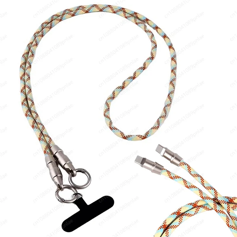Cavo di ricarica rapida tipo C PD 60W Cavo dati intrecciato anti-smarrimento con cordino a tracolla retrò 2 in 1