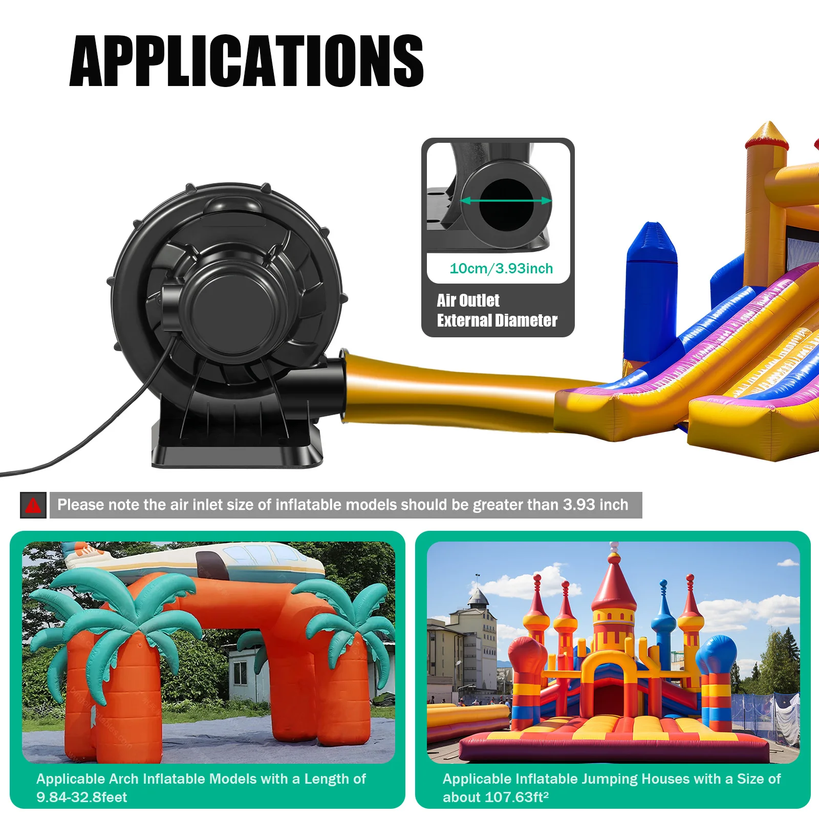 Nuova Pompa per Castello Gonfiabile 220V a Basso Rumore e Alto Flusso d'Aria, Ventilatore Centrifugo per Gonfiabili, per Modelli Pubblicitari 370W