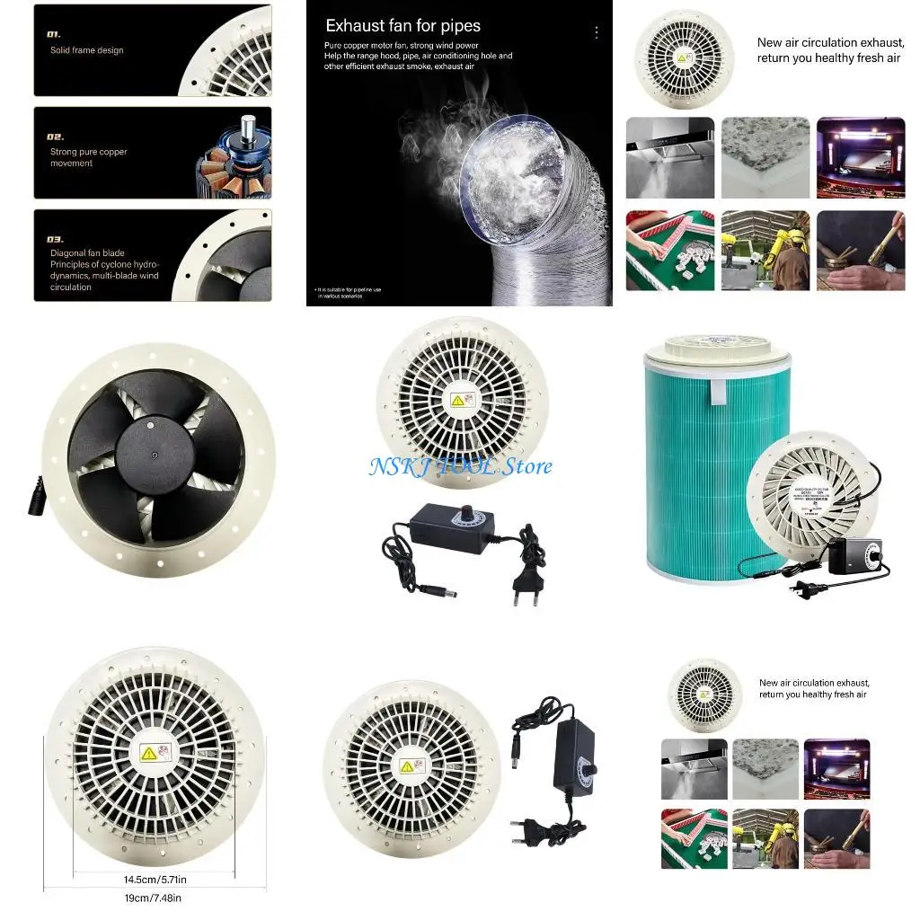 L8RC Ventilatore per condotto a basso rumore da 4500 giri/min Ventilatore scarico 12V per bagno Cucina Pollaio Serra e