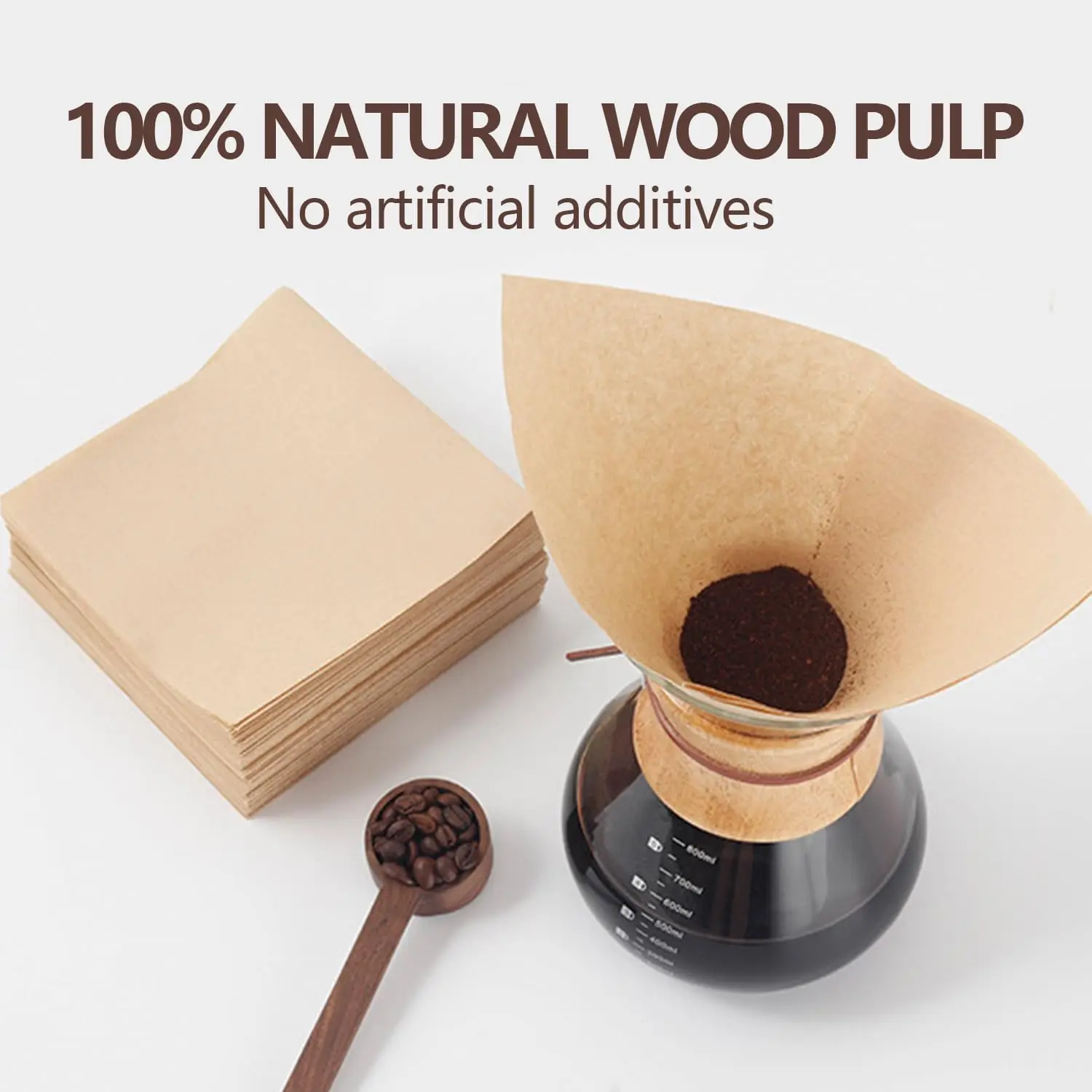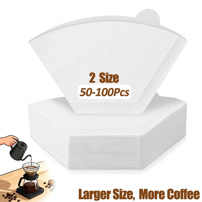 Filtri per Caffè a Forma di V in Carta di Polpa di Legno Naturale, 2 Misure, 50/100 Pezzi