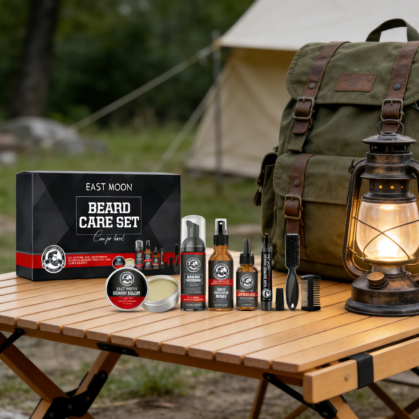 Set per la Cura della Barba East Moon, Nutriente Profondo, Migliora e Ispessisce il Baffo, Riduce la Caduta con Pettine, Kit Regalo per la Crescita della Barba