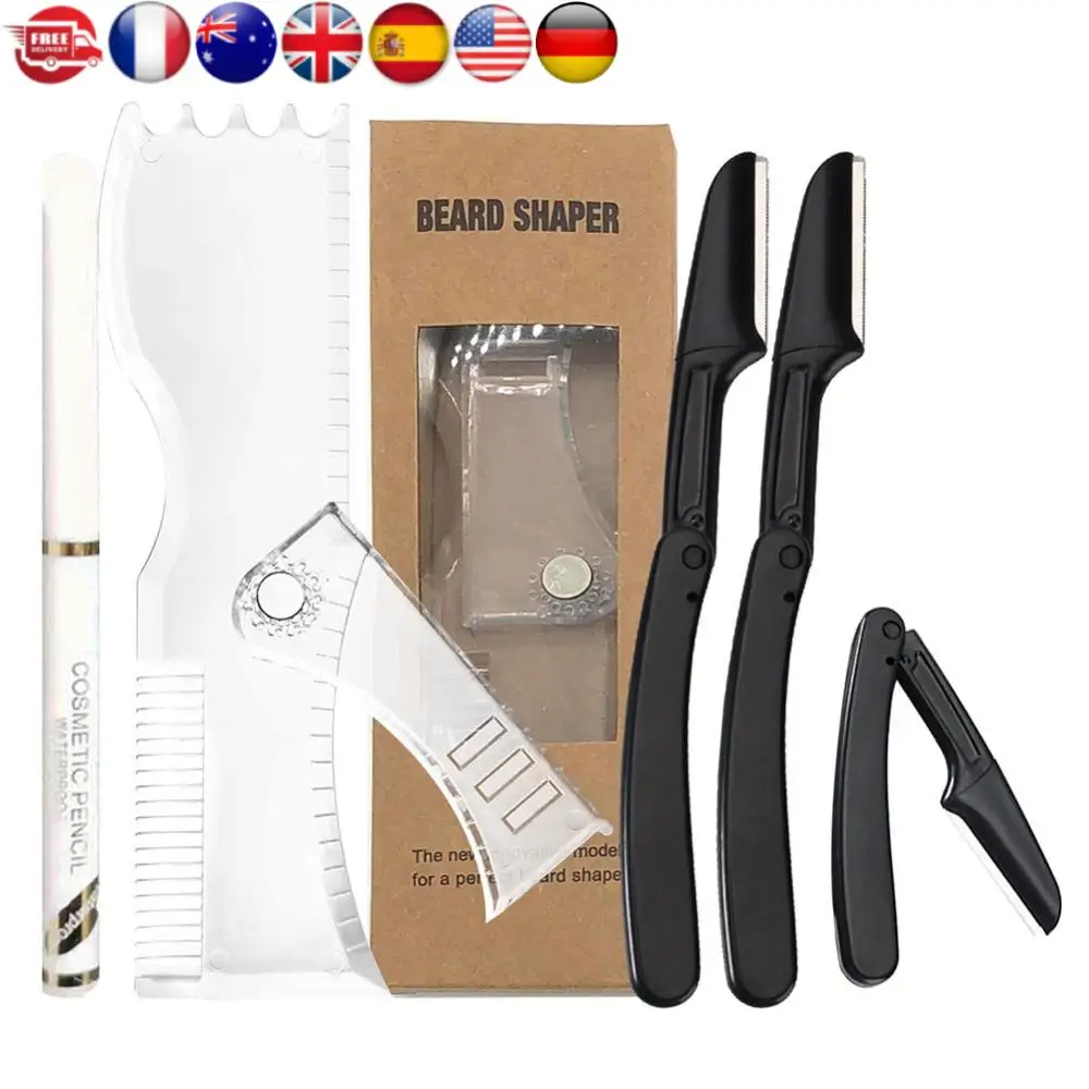 Set Professionale per lo Styling della Barba, Modello Regolabile per la Rifinitura della Baffa, Pratico Set di Strumenti per la Rasatura Maschile, Strumento Antiscivolo per lo Styling
