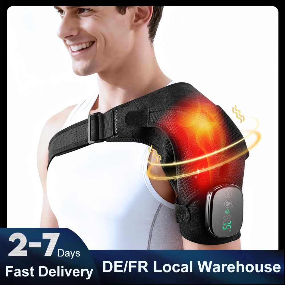 Supporto per spalla riscaldato in fibra di carbonio Massaggiatore per vibrazione della spalla Allevia il dolore alla spalla congelato Problemi di mobilità Recupero della spalla