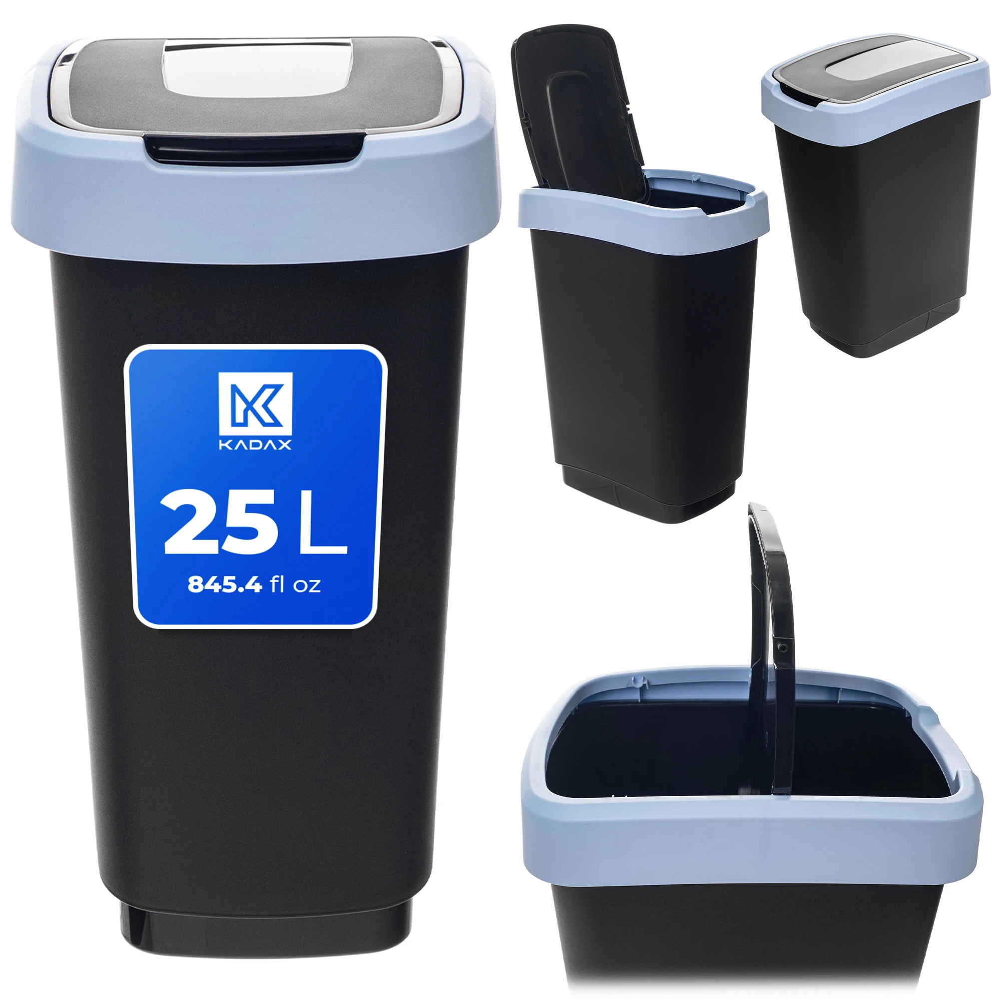Cestino per Rifiuti da Cucina 25L, Contenitore per la Separazione dei Rifiuti con Coperchio, Nero Blu, 1 Pezzo