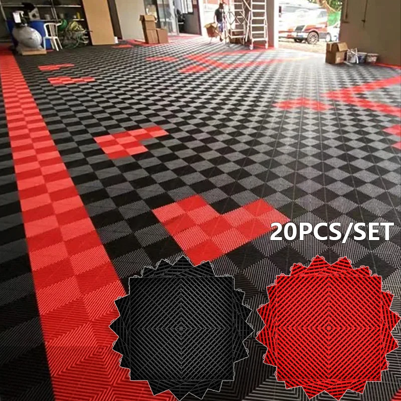 Set di 20 Piastrelle per Pavimento Garage Nere e Rosse 40*40*1,8cm, Mattonelle Incastrabili per Garage, Piastrelle in PVC per Autolavaggio
