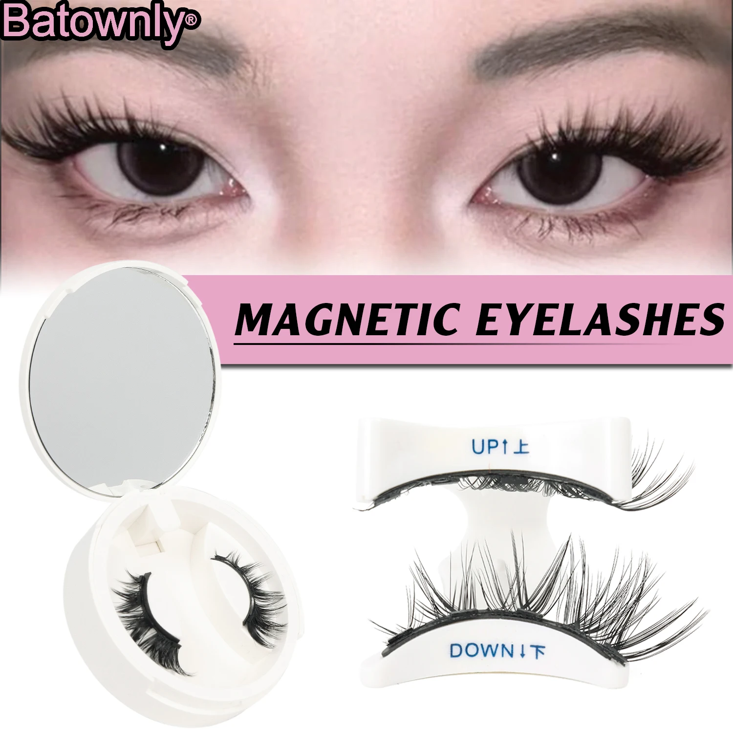 Ciglia magnetiche dall'aspetto naturale (non necessario eyeliner) 3 magneti a cluster, doppie strisce, applicazione con clip, facili da riutilizzare (molto naturali)