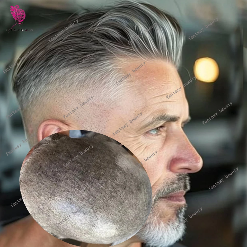 Vecchio Capelli Umani Sistema di Protesi Capillare Uomini Parrucchino Linea Sottile Naturale 65% Capelli Grigi Morbidi Base Della Pelle di Alta Qualità Posticci