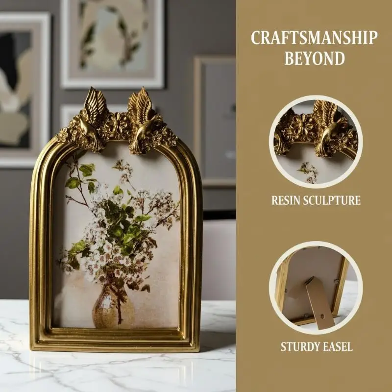 Cornice Ovale per Decorazione da Scrivania o Parete, Piccola Cornice Retrò da Appendere, Creativa Cornice Vintage in Resina Dorata per Esposizione Foto