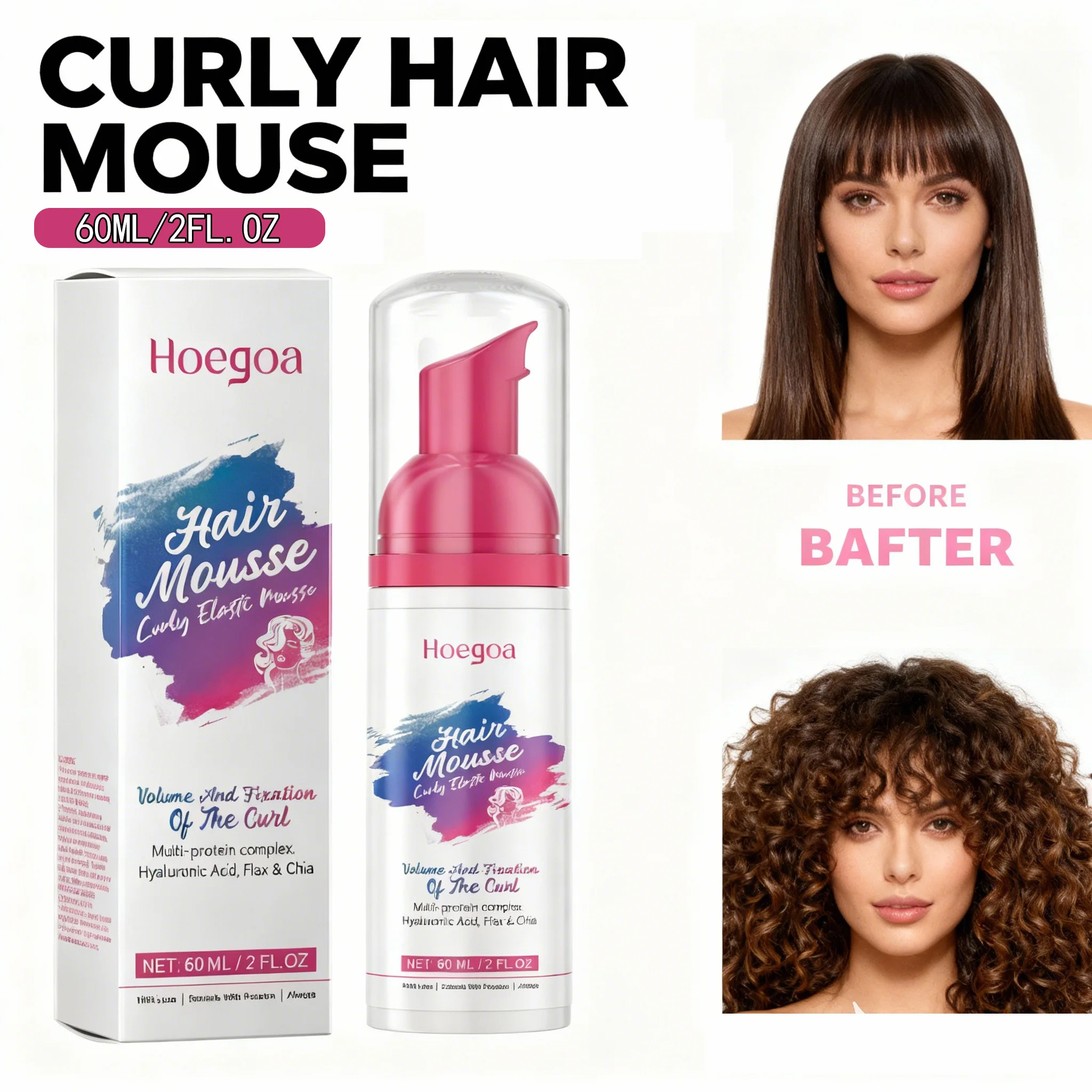 Mousse per definizione di ricci per capelli ricci volumizzante tenuta leggera controllo dell'effetto crespo con estratto di semi di lino all'acido ialuronico non appiccicoso