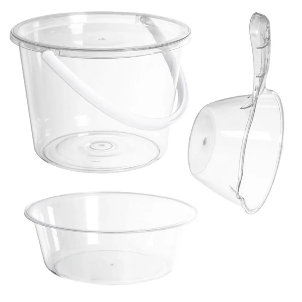 Set di 1 secchio trasparente per acqua con cucchiaio, grande capacità, manico in plastica resistente, secchio multiuso per casa e dormitorio