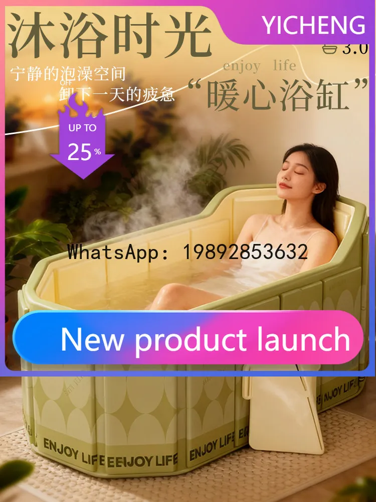 Vasca da Bagno Gonfiabile Portatile in PVC, Pieghevole, con Cuscino e Copertura Termoisolante per Adulti, Uso Domestico