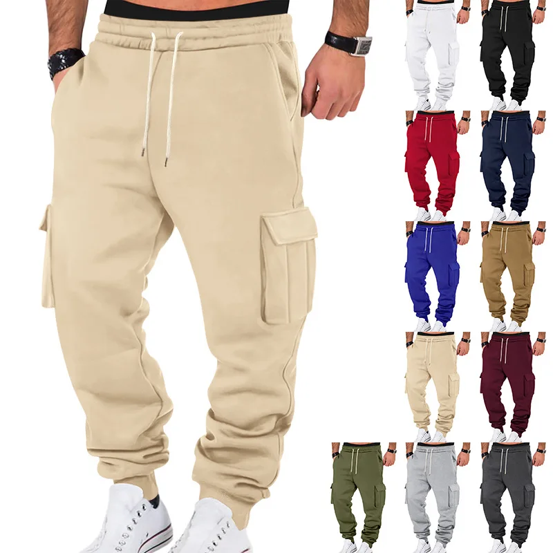 Tuta casual da uomo in pile autunnale e invernale americana transfrontaliera Pantaloni casual sportivi multitasche con coulisse da uomo