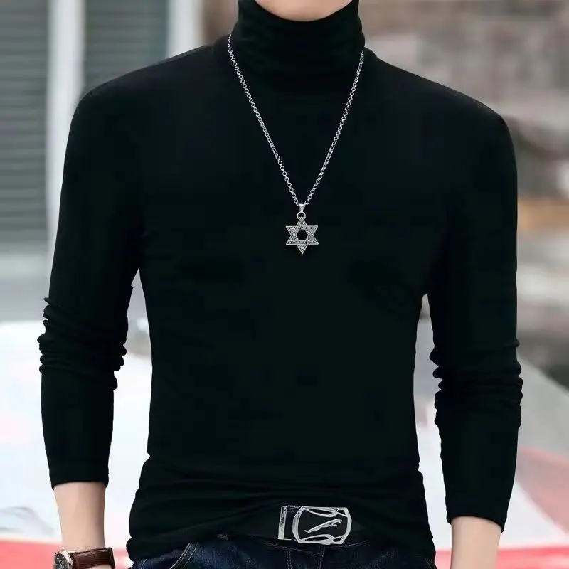 2025 Autunno Inverno T-shirt a collo alto da uomo Slim Fit Moda Alta elasticità Manica lunga in cotone Casual Abbigliamento traspirante Pullover