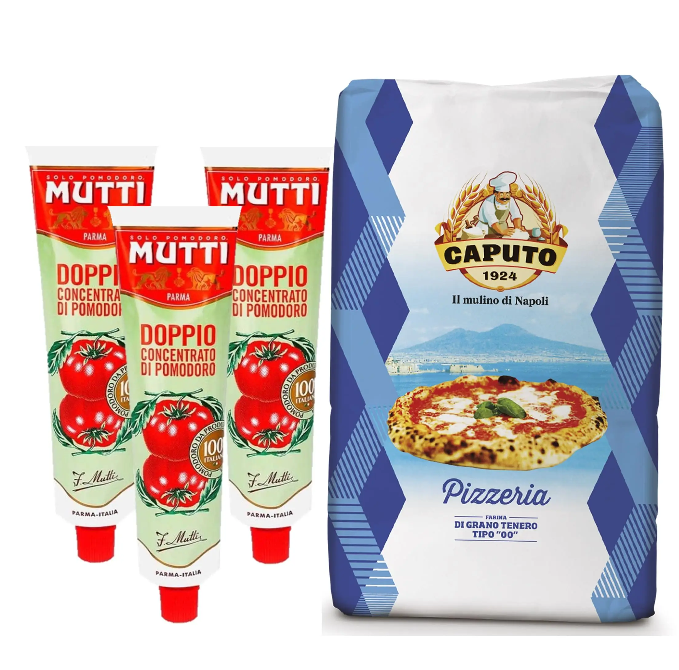 Caputo - Harina Italiana Pizzeria Tipo "00" 1 Kg + Mutti - Concentrado de tomate doble 130 GR x 3 uds - Pack Pizza Perfecta Promoo