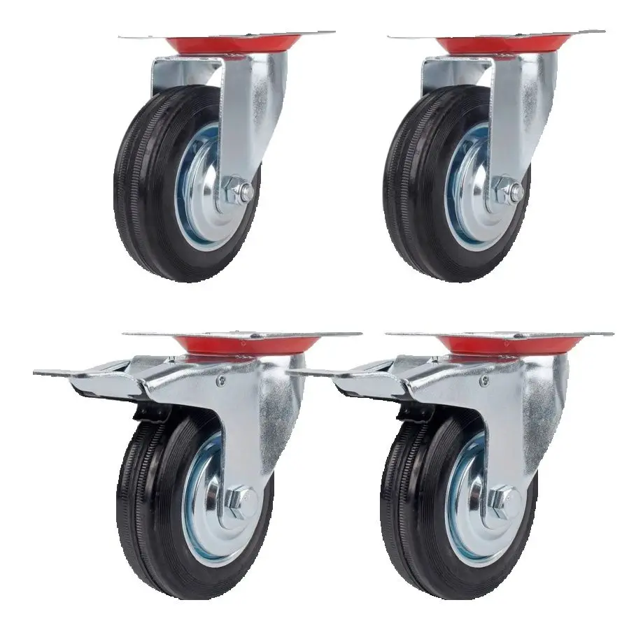 4 pezzi 2 "rotella per mobili in PVC rosso ruota universale girevole ruota a rulli per accessorio carrello piattaforma