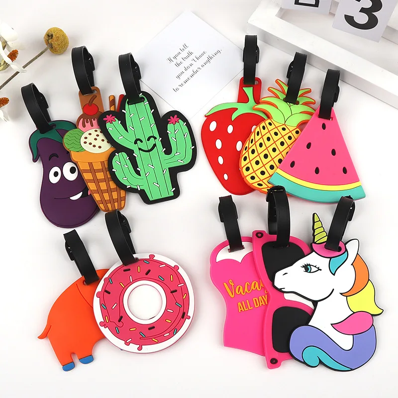 Etichette per bagagli in gomma morbida in PVC per aeroplano Etichette per nome da viaggio Frutta Etichetta per bagagli carina Passaggio d'imbarco Etichetta per indirizzo ID Accessori da viaggio