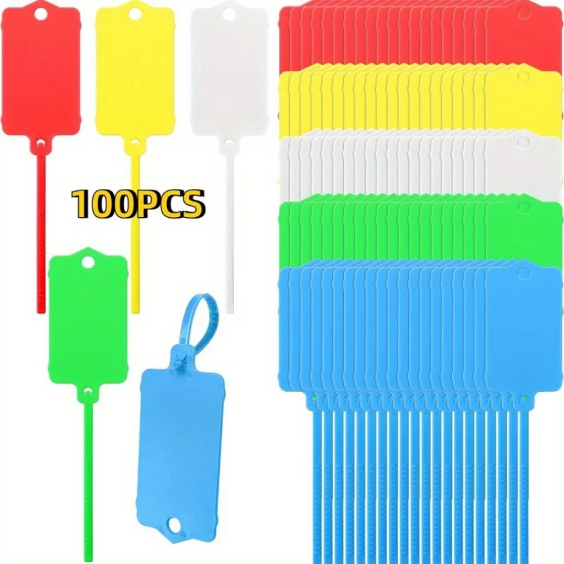 Etichette di spedizione in plastica impermeabile multicolore da 100 pezzi con nastro sigillante - Identificazione dei bagagli | Etichetta di fissaggio di sicurezza