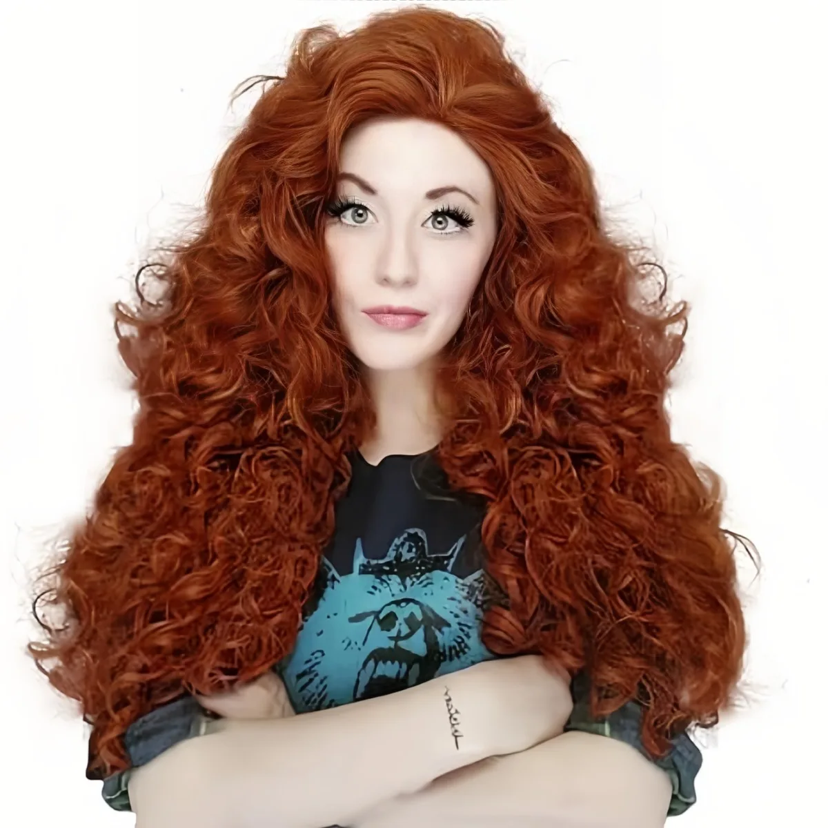 Parrucca in Fibra Sintetica Marca Anxin: Rosso-Marrone, Spessa, Lunga, Ondulata con Ricci Voluminosi e Texture Naturale e Soffice Realizzato in materiale sintetico di alta qualità, comodo da indossare e facile da curare; Un accessorio alla moda adatto alle donne adulte per costumi da cosplay, abiti in stile retrò e look accattivanti per le feste