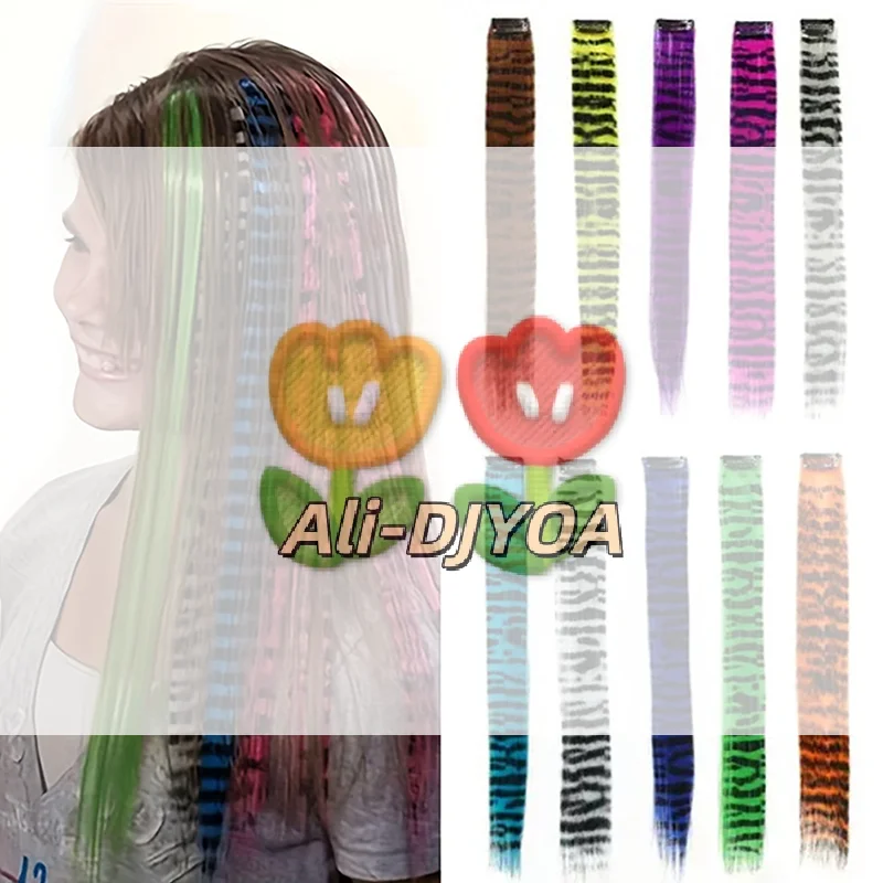 Estensione per capelli lisci con stampa leopardata - Parrucchino con striature multicolori con clip sicura per la moda delle ragazze e lo styling quotidiano