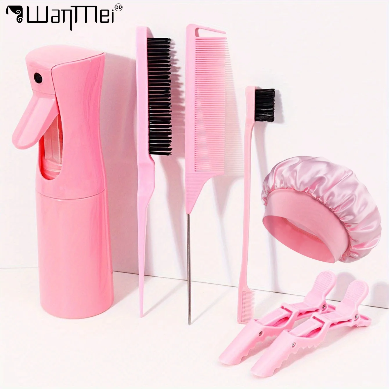 Set Professionale di Strumenti per lo Styling dei Capelli: Flacone Spray Continuo, Pettine a Coda di Topo, Spazzola per Bordi, Fermagli per Capelli, Cuffia in Raso – Per Uso Professionale e Domestico
