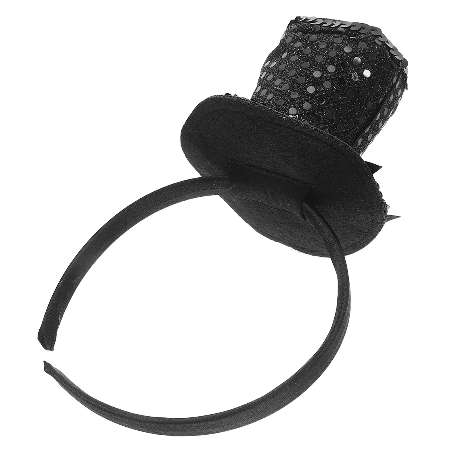 Mini Cappello a Cilindro Nero con Fascia, Decorato con Paillettes, Fascinator con Fiocco per Halloween, Cosplay, Foto Booth, Cerchietto per Capelli Anni '20 per Donne e Ragazze