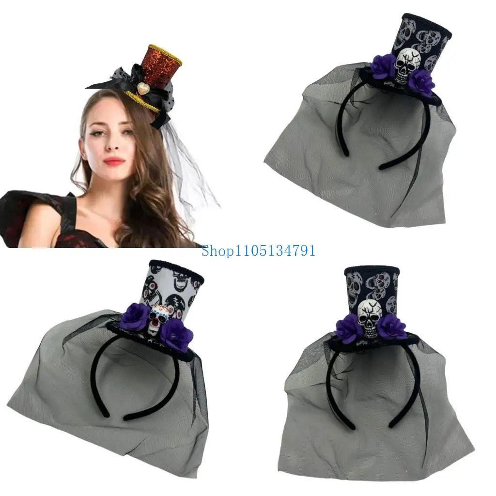 98 Fascia per capelli con teschio in velo a rete alla Accessorio per Halloween Copricapo scheletro regolabile per feste
