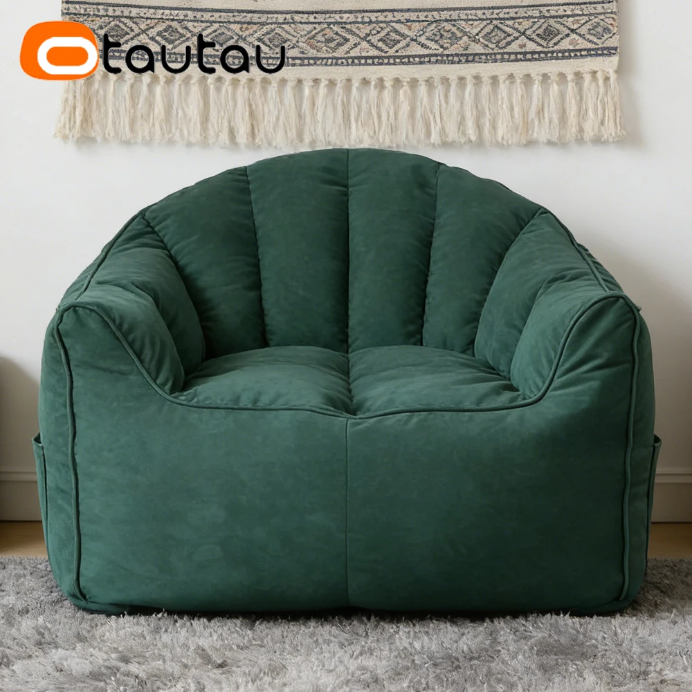 Otautautau 1/2 Seat Soft Fleece Bean Bag Cover No Filler Beanbag Sofa Bed Pouf ottomano Relax Chaise Lounge sedia reclinabile SF018