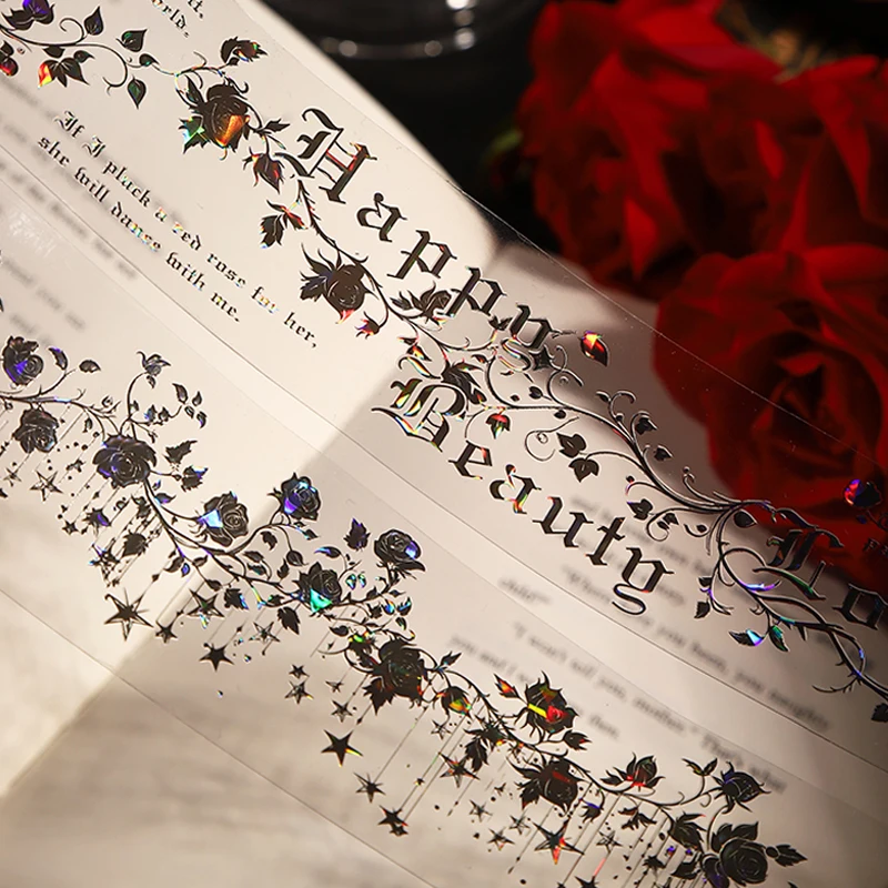 Mr. Paper, Nastro Adesivo Decorativo Vintage Nero con Piante, 200cm/rotolo, Stile Gotico con Pipistrelli e Fiori, Nastro PET per Scrapbook, Decorazioni Fai-da-Te e Regali