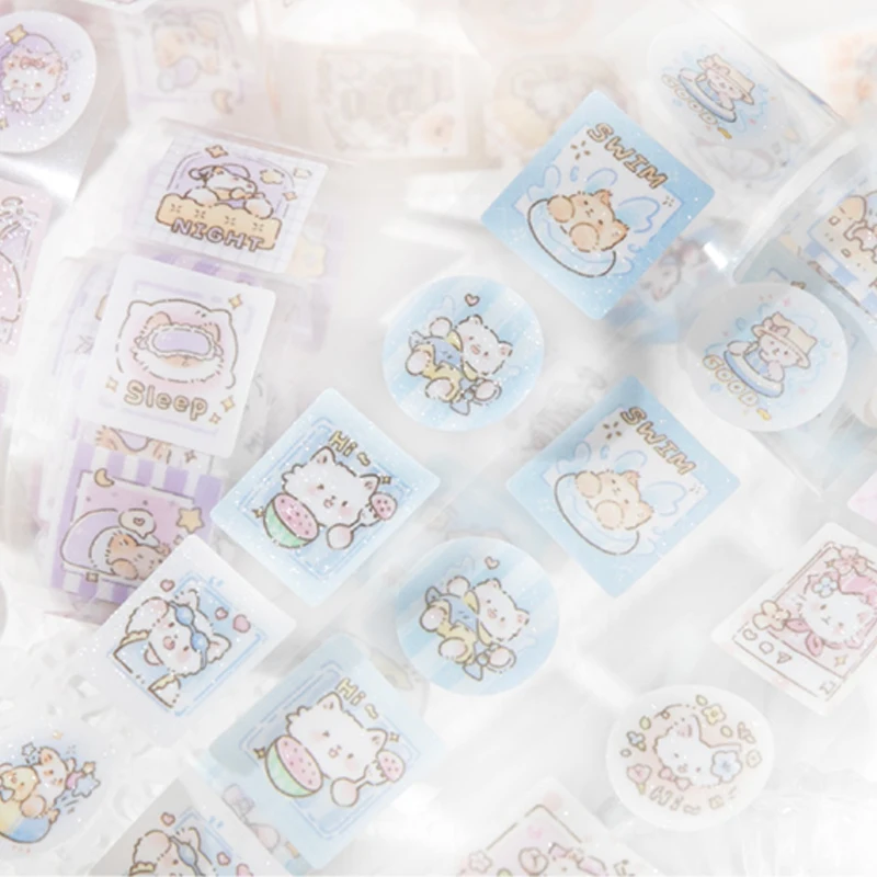 Mr.Paper, Nastro Adesivo Decorativo con Animali Carini, 1 Rotolo, Nastro PET Scintillante con Gatti Kawaii, Adesivi per Decorazione Casa, Diari e Scrapbook