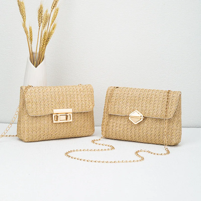 Borsa a tracolla 2026 di nuova moda in paglia intrecciata con doppio chiusura, versatile e semplice, piccola borsa quadrata casual