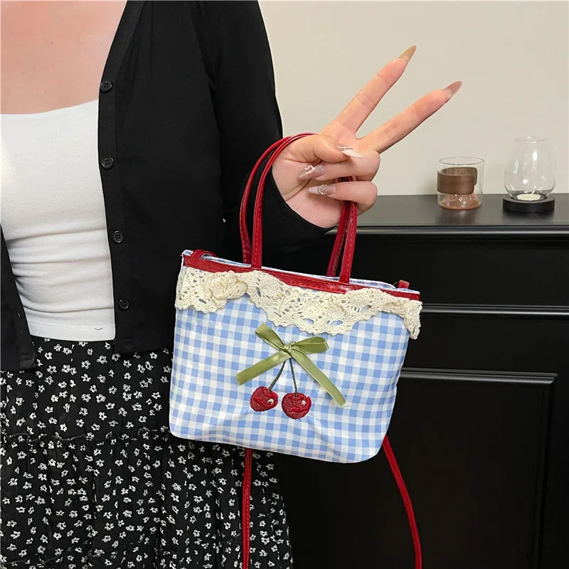Nuova borsa da donna coreana a quadretti a pois con fiocco carino dolce borsa a tracolla Verstaile borsa a tracolla di alta qualità di marca di lusso