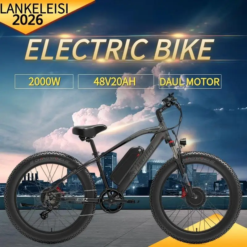 Lankeleisi MG740Plus Bicicletta Elettrica da Neve con Pneumatici Fat da 26 Pollici, Batteria al Litio 48V20Ah, Motore Doppio 2000W, E-bike