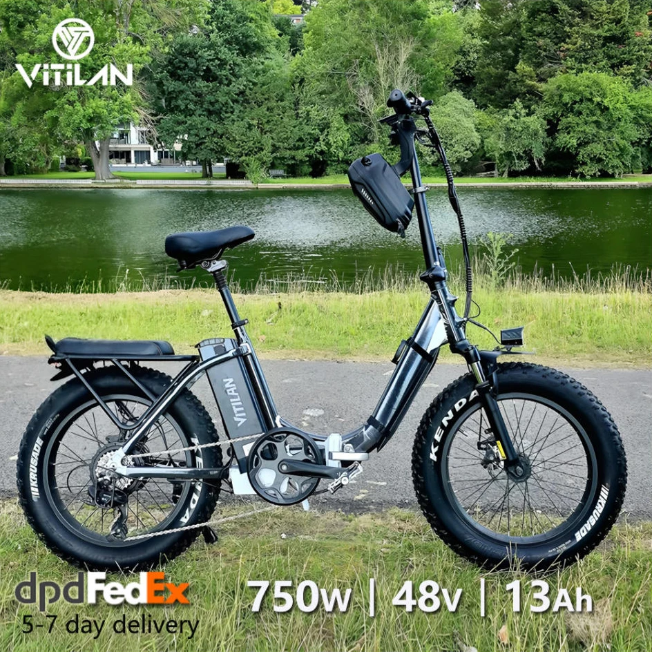 Bicicletta Elettrica Pieghevole Vitilan U7 750W, Mountain Bike con Batteria Rimovibile 48V 20Ah, E-bike Fat 20" x 4.0