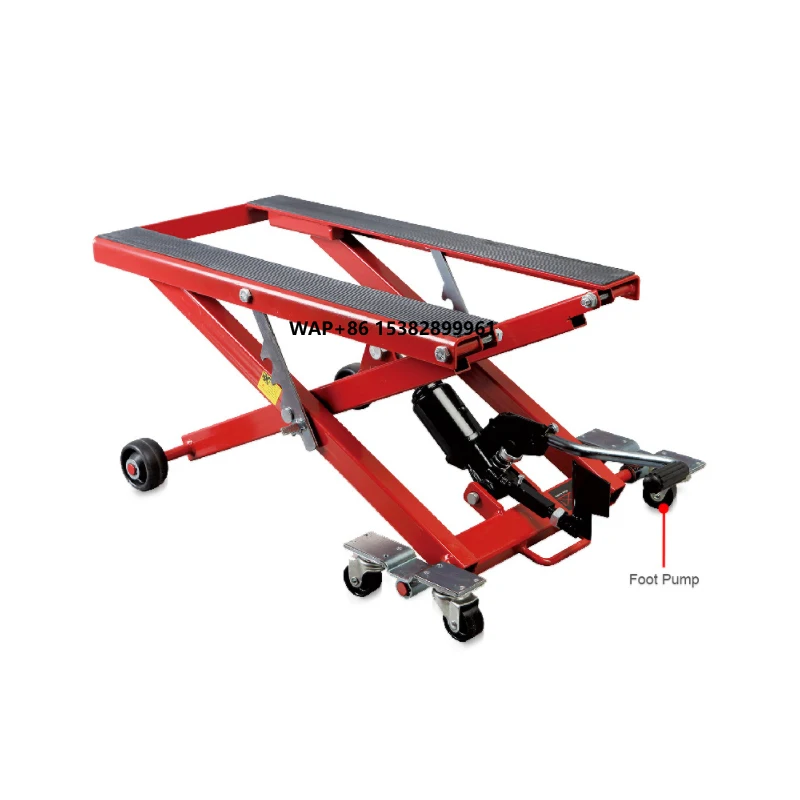 Tavolo elevatore per moto 500 kg Sollevatore idraulico per carichi pesanti Getto per sollevamento a forbice a ponte largo Getto per supporto per piede da tavolo per motore ATV per bici da cross