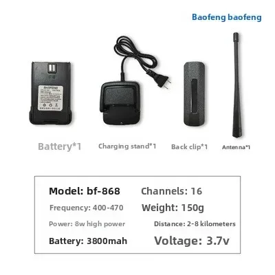 Il miglior walkie-talkie portatile BAOFENG BF-V8 è adatto per uso civile, piccolo, portatile e leggero.